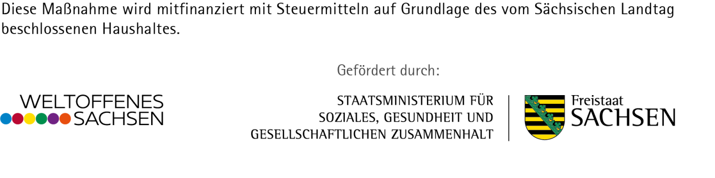 Mitfinanziert wurde die Maßnahme als Teil des Programms "Weltoffenes Sachsen" mit Steuermitteln auf Grundlage des vom Sächsischen Haushalt beschlossenen Haushaltes.