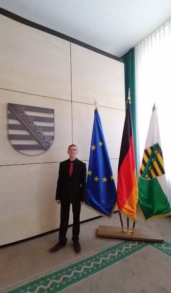 Den Nachmittag verbrachten wir in der Staatskanzlei. Sehr aufmerksame Mitarbeiter führten uns in zwei Gruppen durch das historische Gebäude. Sogar das Büro des Ministerpräsidenten durften wir besichtigen. Als Höhepunkt sollten wir Michael Kretschmer persönlich treffen, doch er war noch in der Landtagssitzung. So führte sein Büroleiter das Gespräch. Und plötzlich war der Ministerpräsident doch da, denn er wollte unbedingt „seine Görlitzer“ treffen. Michael Kretschmer beantwortete geduldig und aufgeschlossen unsere Fragen zu Inflation, alltäglichem Rassismus, Görlitz-Politik und seiner schlesischen Familiengeschichte. Besonders freute er sich über unser Geschenk – einen der seltenen Herrnhuter Literatursterne.