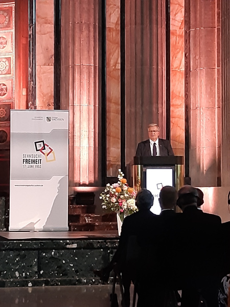 An dieser Veranstaltung nahmen Michael Kretschmer, der Sächsische Ministerpräsident, Professor Dr. Stephan Harbarth, der Präsident des Bundesverfassungsgerichtes und der ehemalige Präsident Polens, Bronislaw Komorowski, teil.